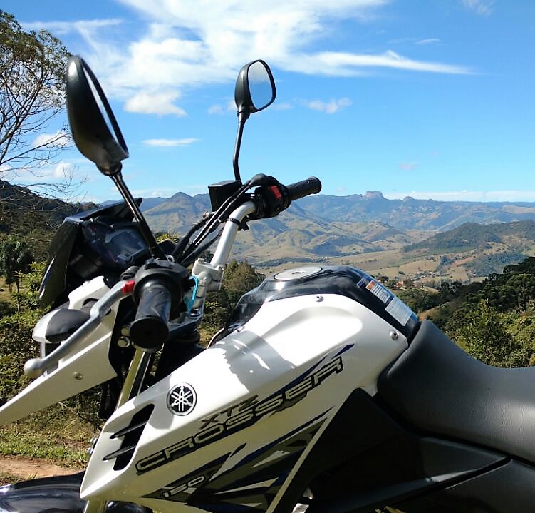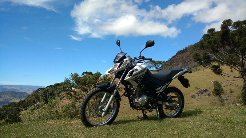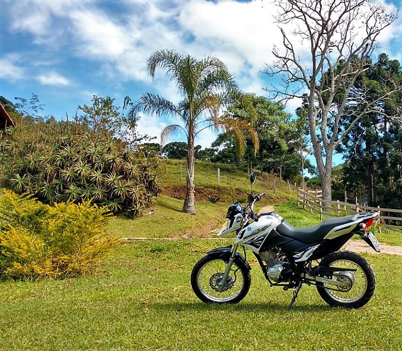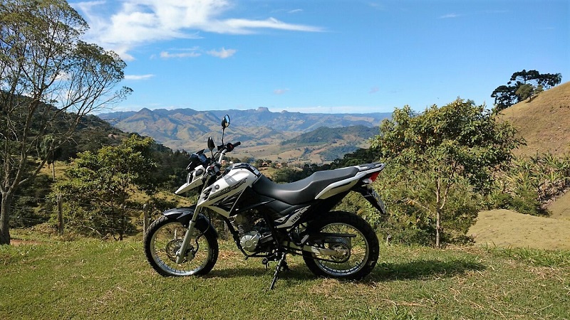 Com freio a disco na dianteira, traz ainda mais agilidade, segurança e conforto na pilotagem, principalmente quando utilizada no off road. E por falar em off road, nosso campo de provas para esta avaliação foi a serra da Mantiqueira, onde enfrentamos caminhos dentro de uma fazenda nada fáceis de superar, principalmente pela falta de estrada e subidas íngremes.