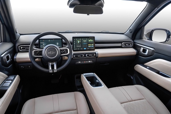 Internamente oferece painel digital de 8,8”, central multimídia de 10,1”, câmera 360°, sensores, faróis automáticos e um pacote de segurança com alerta de colisão, frenagem automática e controle de cruzeiro adaptativo. O porta-malas traseiro acomoda 355 litros e mais um espaço sob o capô leva 35 litros.