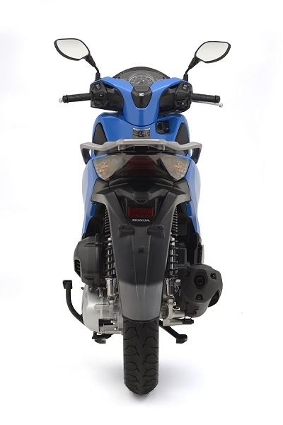 Assim, a dianteira da SH 150i destaca a beleza de seu layout graças à carenagem frontal. Luzes de direção totalmente embutidas, mescladas por faixas de iluminação especial em LED, que ficam acesas permanentemente após o acionamento do motor, ganham destaque de dia ou à noite pela imponência e beleza. Um pouco mais acima está o farol em LED, nivelado em um conjunto com traços angulados e perfil mais aerodinâmico, que completam seu visual moderno e despojado.