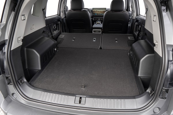 Os bancos dianteiros contam com ventilação no assento e no encosto. Na versão Premium, o banco do motorista oferece ajustes memorizados com função de acesso facilitado. O banco traseiro possui ajuste de inclinação em dois estágios (25° e 30°) e pode ser rebatido na proporção 40/60, ampliando a capacidade do porta-malas para até 1.455 litros. Com os bancos na posição normal, o porta-malas acomoda 574 litros. O espaço para ombros na segunda fileira, de 1.498 mm, reforça a sensação de amplitude e conforto em qualquer posição.