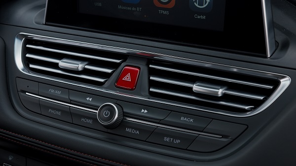O sistema de ar-condicionado, por sua vez, posicionado no console central, logo abaixo do kit multimídia, é digital e automático. Sua principal função é definir a temperatura desejada e fixá-la no mostrador. No modo automático, o aparelho variará a velocidade de resfriamento até que a temperatura desejada seja atingida. Logo abaixo, o motorista encontra a tomada USB, que é utilizada para espelhamento do telefone celular ao kit multimídia.