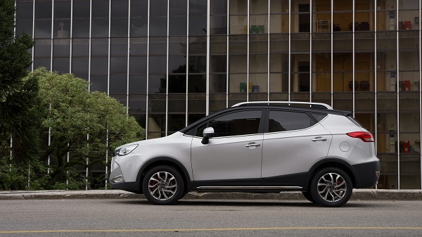 A lateral mistura linha alta na “cintura” e traços que surgem no capô dianteiro e no para-choque que promovem sensação de fluidez dinâmica e constante movimento. A pequena janela e a coluna C mais larga dão o tom da robustez que convém a um SUV, a exemplo das rodas de liga de 16 polegadas e dos apliques plásticos em linha ascendente nas portas traseiras.