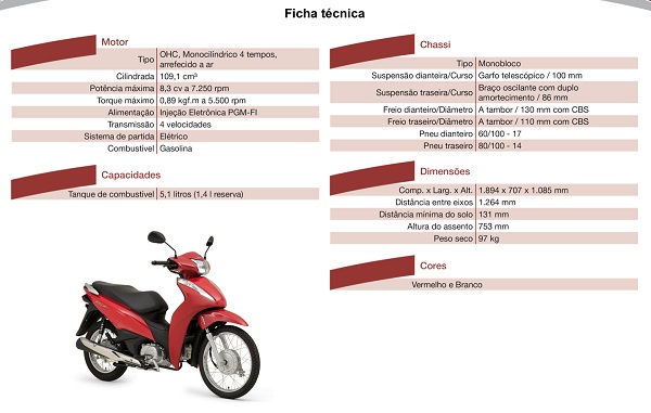 De todo esse processo, chegou-se à nova geração das Biz inicialmente com motor 100cc, depois 125 (2005), injeção eletrônica (2007) e tecnologia flexível (2011). Agora é a vez do sistema de freios combinados CBS. E de onde veio o motor 110? Da Pop, que nasceu bem depois com um motor mais moderno.