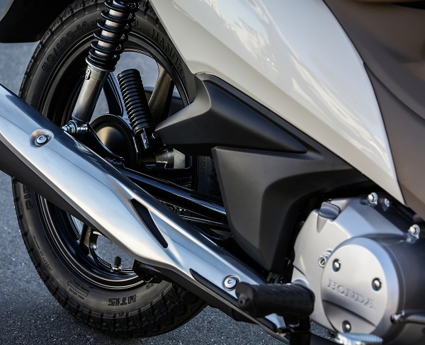 O curso de suspensão é pequeno, como nos scooters, só que as rodas maiores a deixa mais estável e confortável. Na verdade, nem dá para comparar os dois veículos, porque são bem diferentes na forma e função, mas é sempre uma pergunta que acabo recebendo: qual escolher entre uma Biz e um scooter? Eu mesmo rodo em SP de scooter, mas sou fã de carteirinha da Biz.