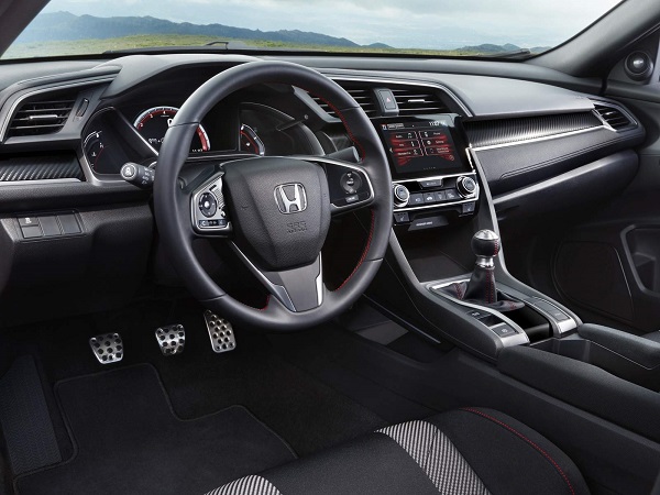 O interior do Civic Si traz exclusivos e envolventes bancos dianteiros esportivos, com costuras vermelhas e logotipos da versão. A costura vermelha dos bancos é replicada nas portas, volante e na coifa do câmbio, com alavanca em alumínio. Outros detalhes do interior são a iluminação vermelha do painel em TFT e dos comandos internos, os pedais em alumínio e o friso do painel de instrumentos com acabamento Dry Metal Carbon.