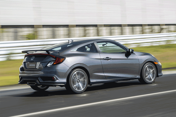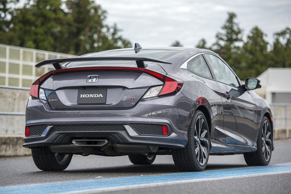 Para ampliar o quociente esportivo do Civic, os modelos Si trazem uma dianteira agressiva com friso frontal preto e largas tomadas de ar. Rodas de liga leve de 18 polegadas, com dez raios e acabamento exclusivo em dois tons, usam pneus de 235 mm, largos, de perfil baixo, além de escapamento central com formato poligonal e acabamento cromado. Na traseira, o cupê mantém a assinatura de design do modelo, com barra de LED horizontal e elevado aerofólio traseiro.