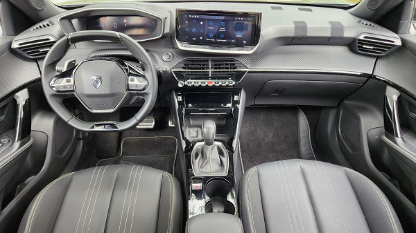 No interior, o ambiente do 2008 GT Hybrid se mostrou adequado tanto para trajetos curtos quanto para viagens mais longas. A central multimídia Peugeot i-Connect Advanced de 10,3 polegadas, com espelhamento sem fio, facilitou a navegação e o acesso a aplicativos durante todo o período de uso. O teto solar panorâmico contribuiu para maior luminosidade interna, enquanto os bancos traseiros bipartidos ampliaram a versatilidade para transporte de bagagem em viagens prolongadas.